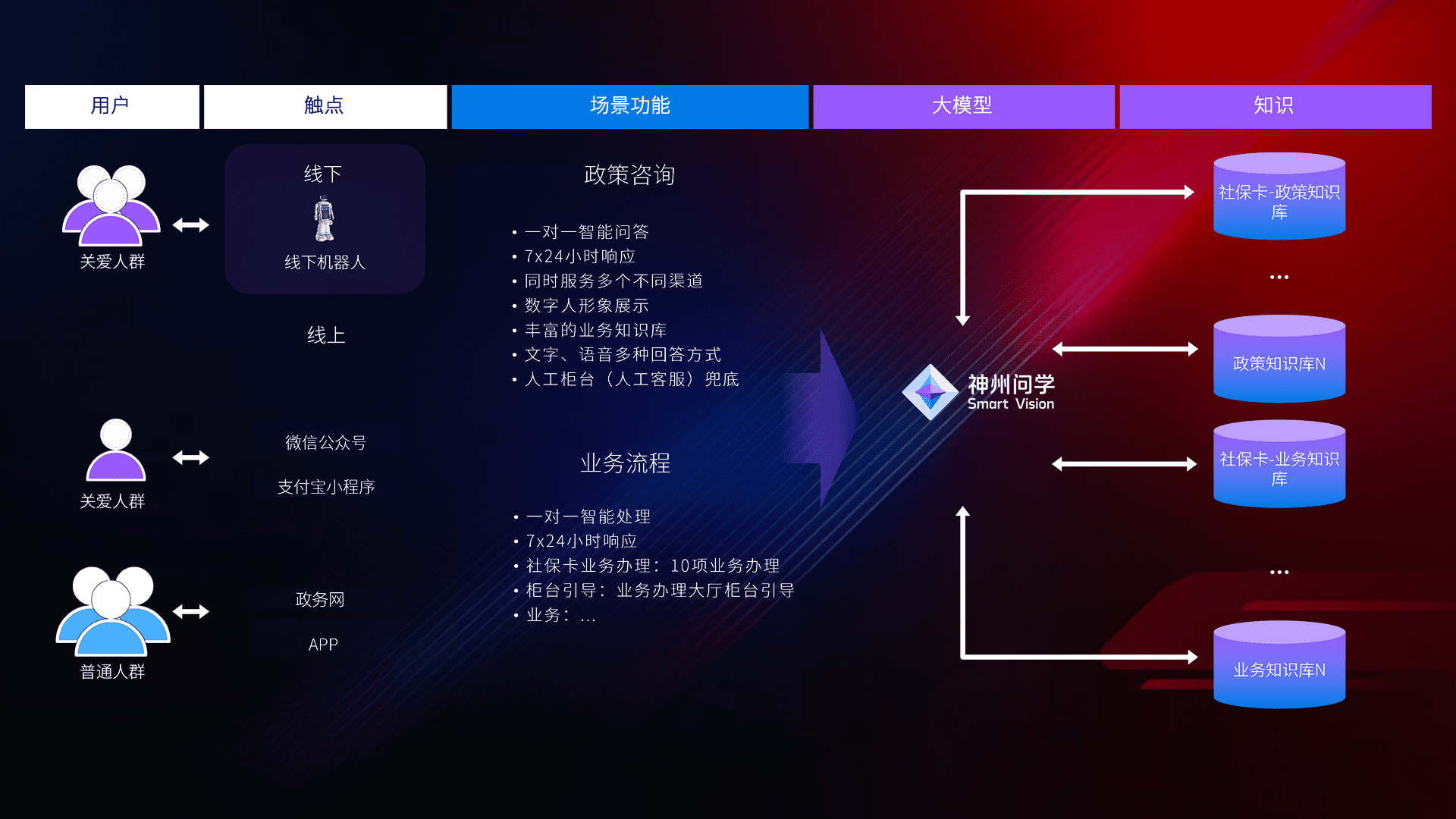 在服务大厅部署客服机器人,,,,在线上应用和小程序配置客服数字人,,,724小时为群众解答常规问题,,,,客服机器人无法处理的,,,,转现场人工处理。。。