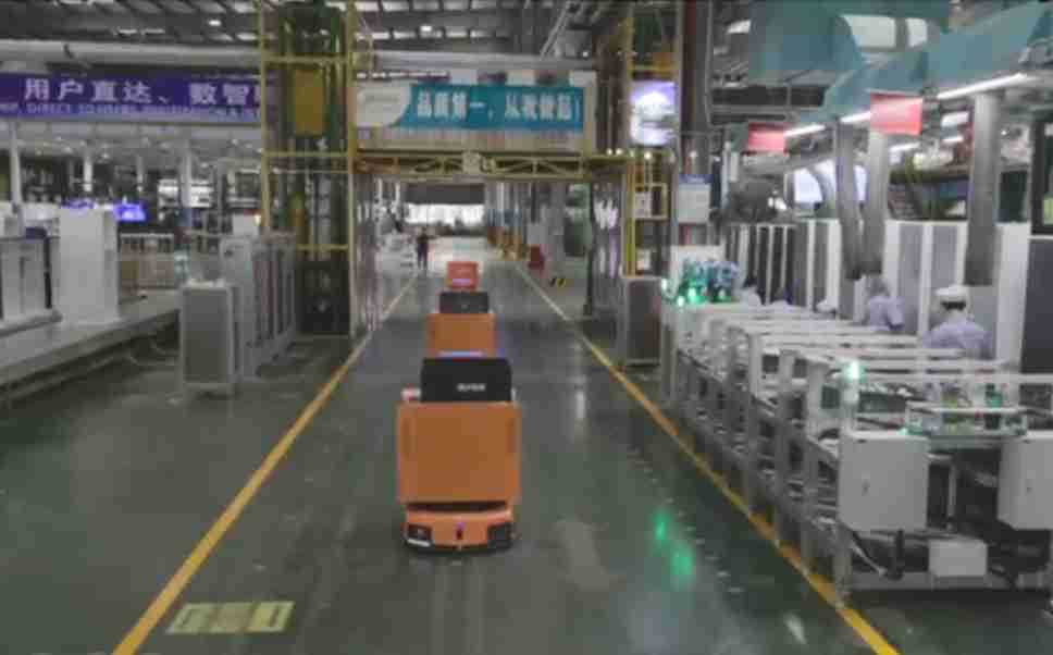 为车载冰箱物流配送打造的智能解决方案,,,包含产中物流通过潜伏举升AMR搬运至线边,,,产后成品物流智能仓储,,流程包含产中物流智能齐套入库,,,线边安灯叫料AMR智能配送至线边,,,,成品入库、、、出库,,,,通过无人堆高车机器人,,智能仓储管理替代人工作业管理,,,,实现更高存储、、更高效率、、、更具柔性化的解决方案。。。